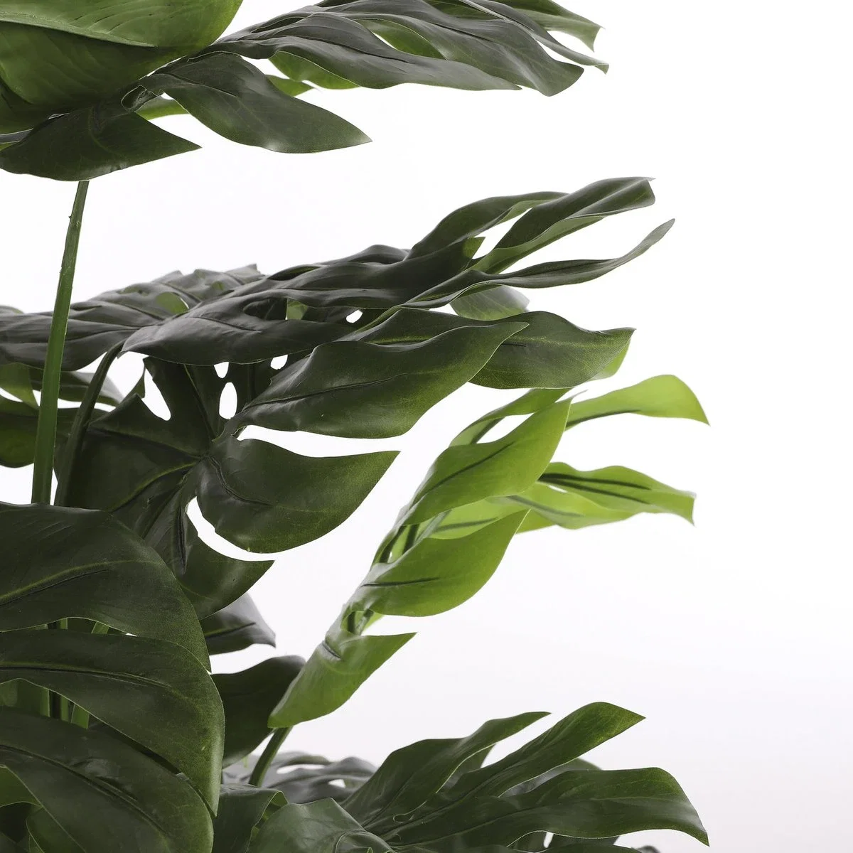 Wat deze kunstplant zo bijzonder maakt, zijn de grote Monstera-bladeren met natuurlijke gaten, uitgevoerd in verschillende formaten en kleurtonen. Dit zorgt voor een dynamisch en levensecht effect. De plant moet voor gebruik nog in model worden gebracht; een handige vuistregel hierbij is dat het blad je als het ware “aankijkt”. Zo creëer je eenvoudig een volle, natuurlijke uitstraling die perfect past bij jouw ruimte.